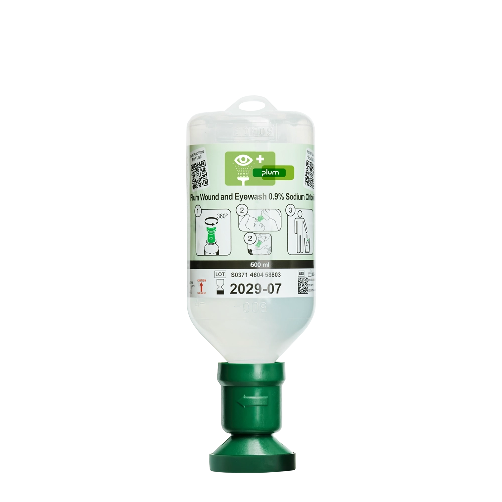 - Plum Wound and Eyewash: 0,9 % steril Sodium Chloride
