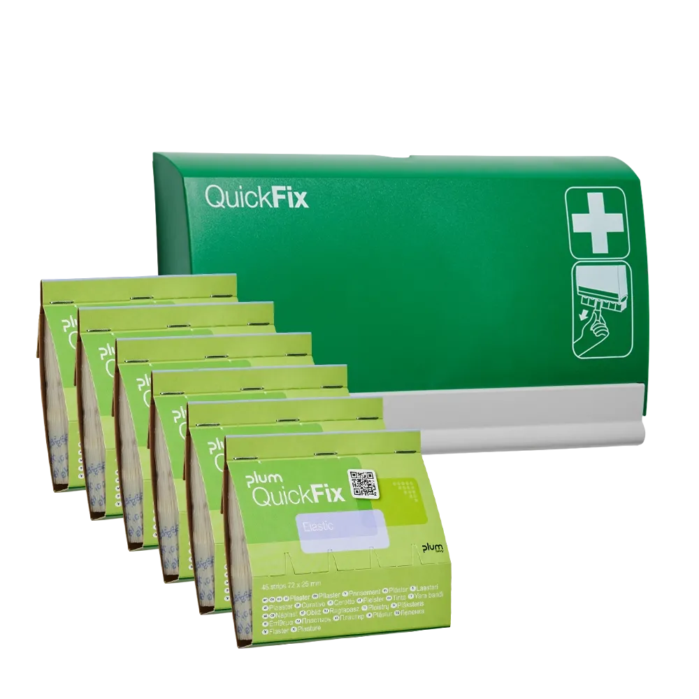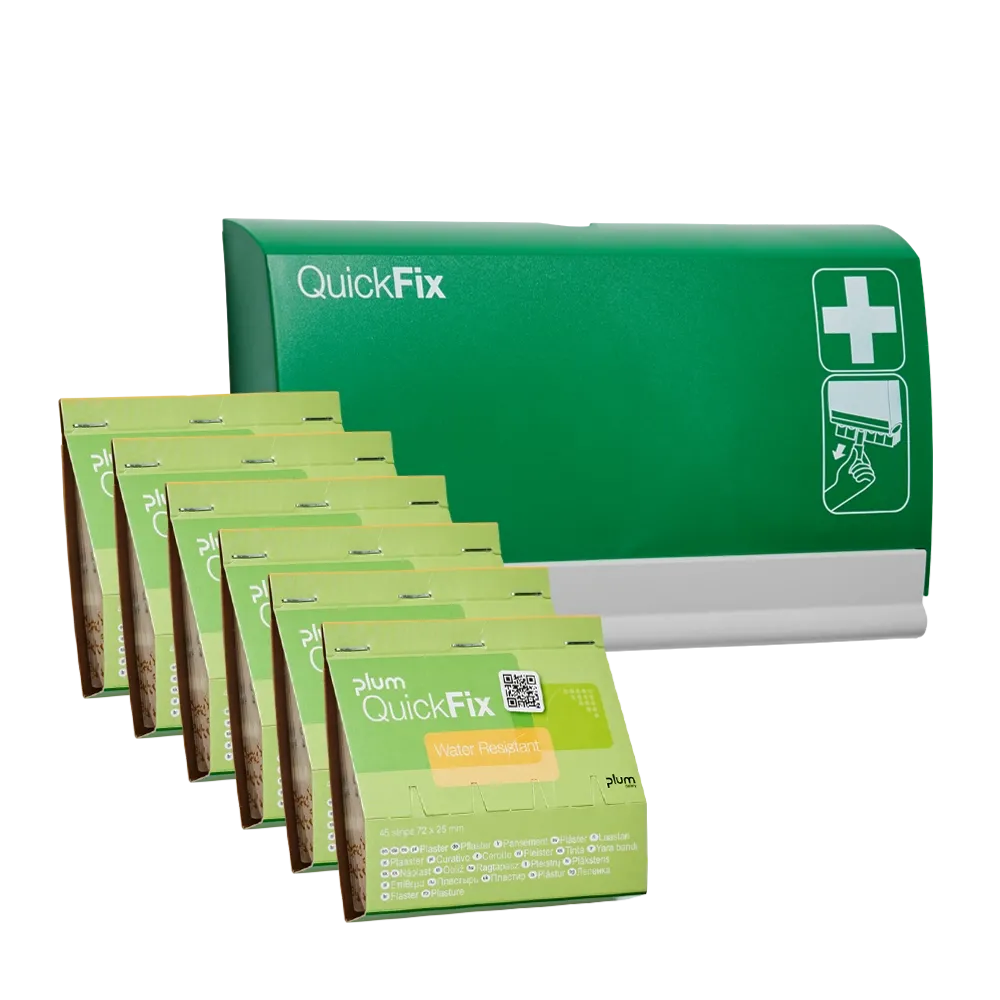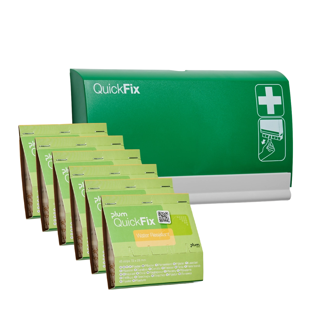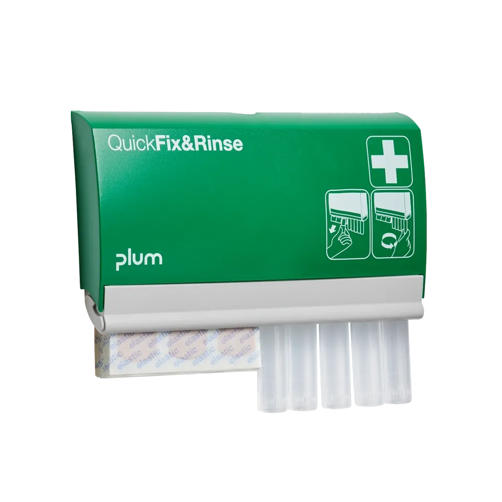 Plum QuickFix provides a structured approach to first aid of minor injuries. Our range of plaster dispensers contain more types of dispensers in different designs. They are developed for different types of workplaces and they can be filled with plasters and wound and eyewash ampoules in a variety of mixes to meet the needs of every work situation.