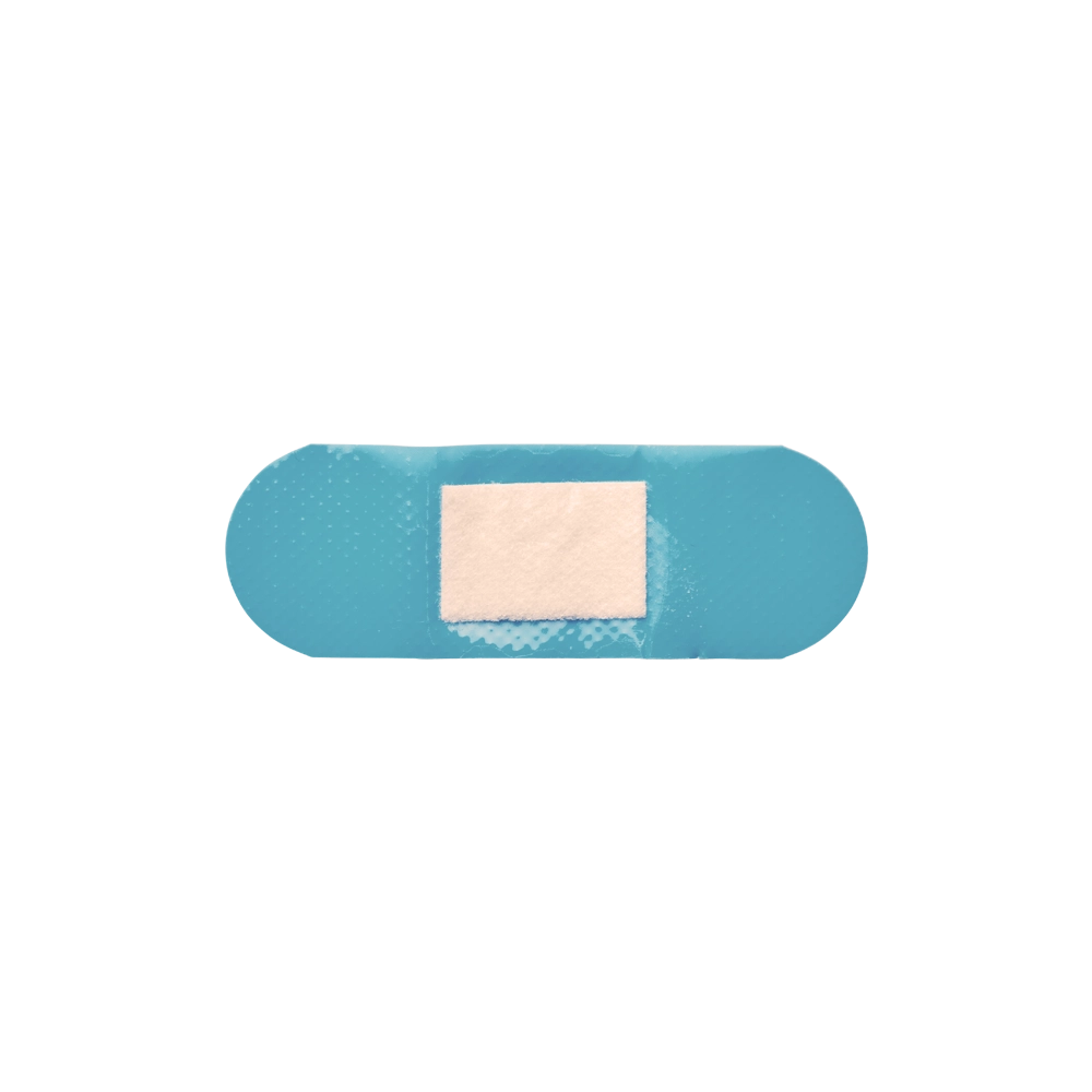 45 blue PE X-ray detectable plasters with an aluminum inlay containing barium sulphate. The plasters are water resistant and detectable by metal detectors and X-rays.