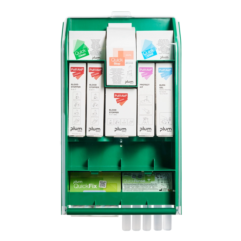 Plum Safety offers a range of high quality first aid solutions designed for every workplace – whether it’s an office, laboratory, or an industrial setting. Our products are functional and simple to use. Choose your combination of eyewash, plasters, burn gel and wound cleansing wipes for a tailored first aid solution.