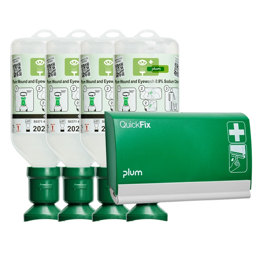 The Plum QuickFix dispenser is developed to fit many different workplaces and can be filled with plasters and ampoules of eyewash in a variety of mixes to meet the needs of every work situation.